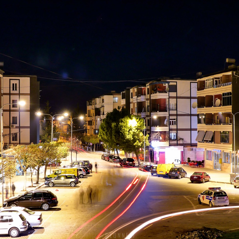 Downtown Burrel , Albania by night